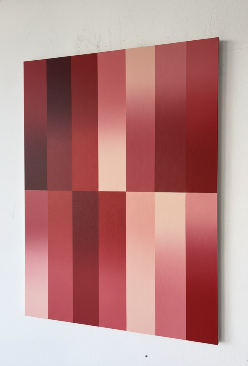 A subtle colour palette meets graphic shapes in this unique painting.