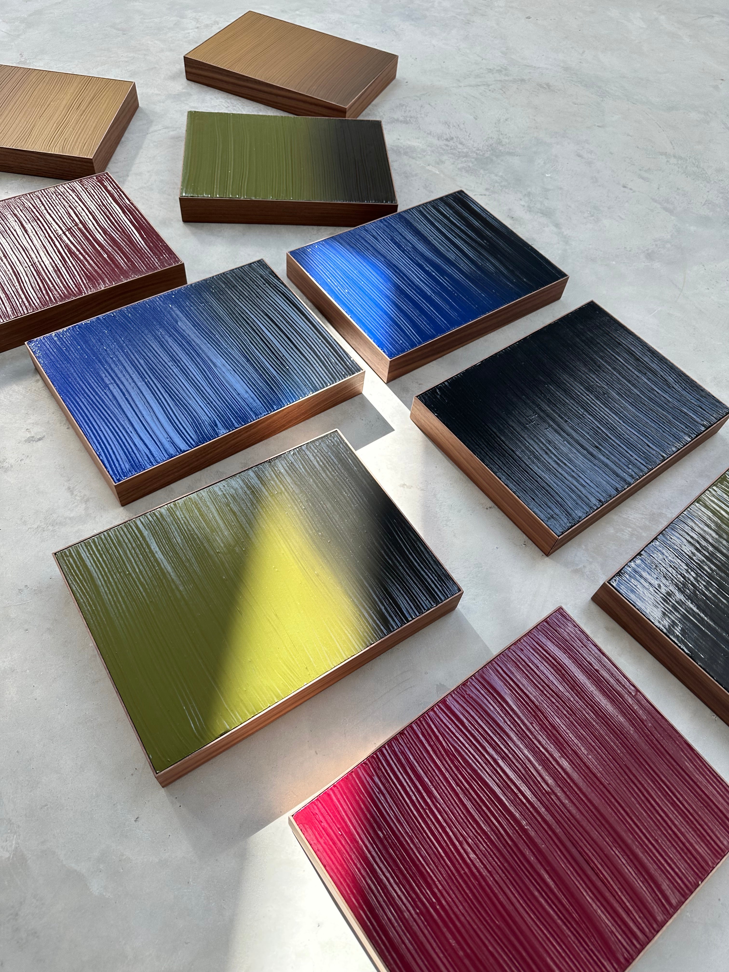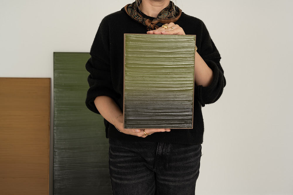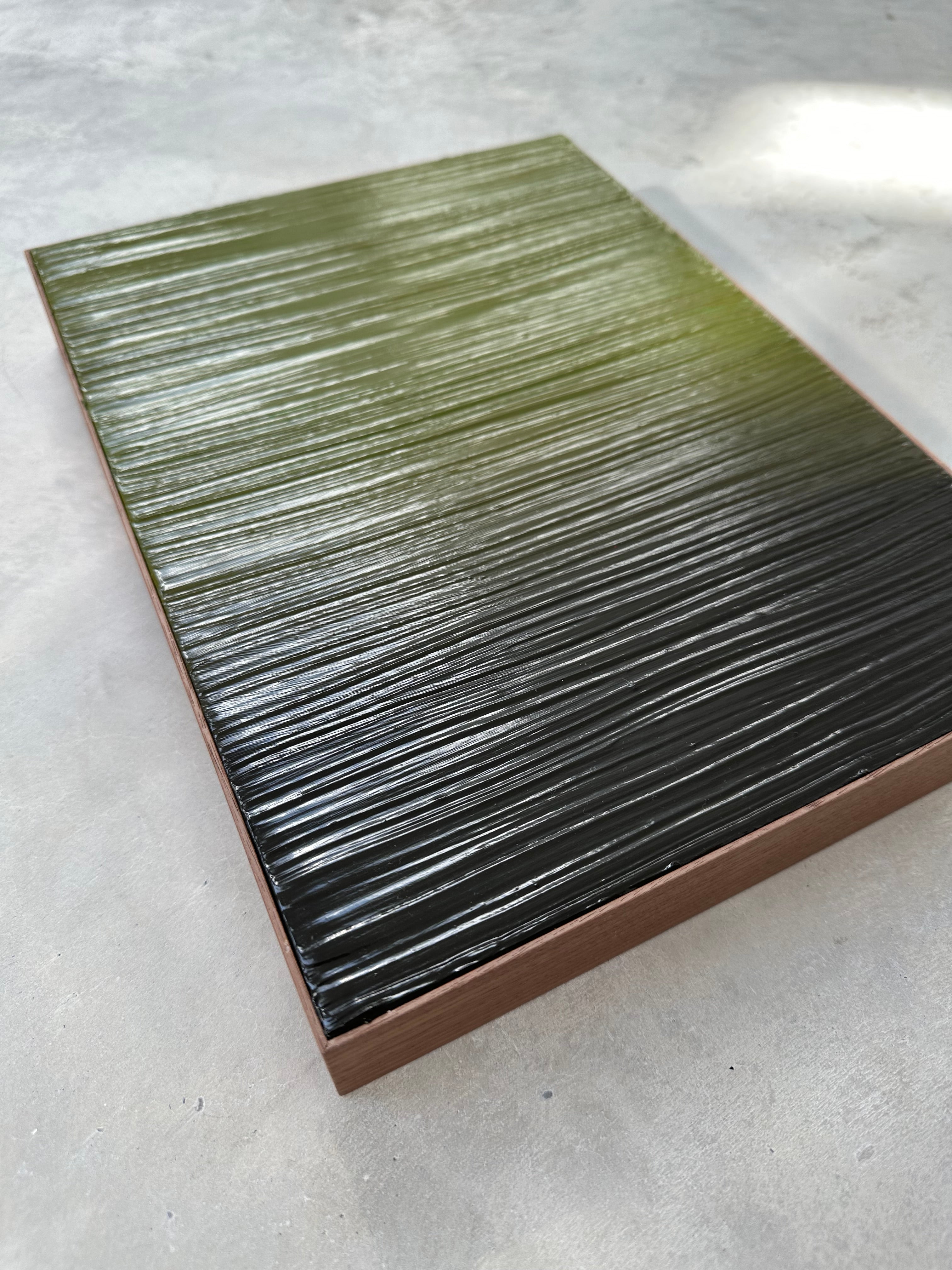 Original painting, Blurred lines Green,wooden frame