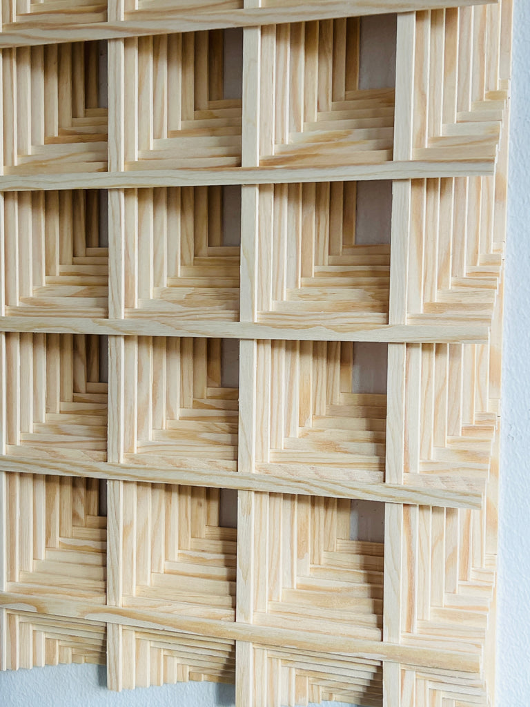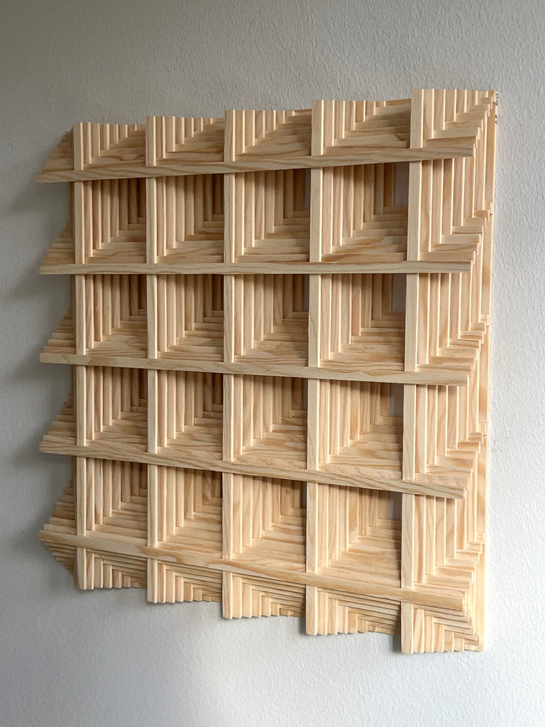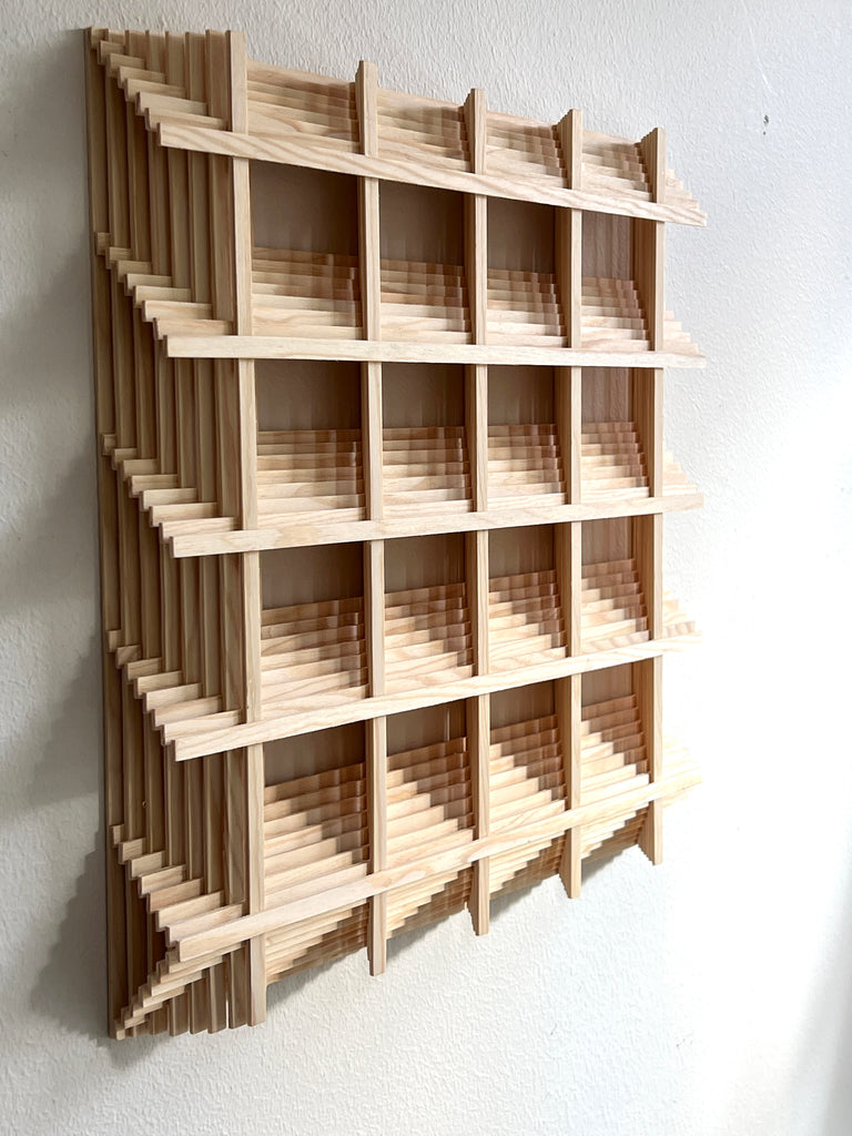 This artwork is a unique artwork in the series “Sections”, which is made exclusively for The Ode To. The name comes from Sections of a structure, as these should be seen as a cut through a three-dimensional element and stand as studies in how light and shadow fall on spaces and intervals, materials, and color.
