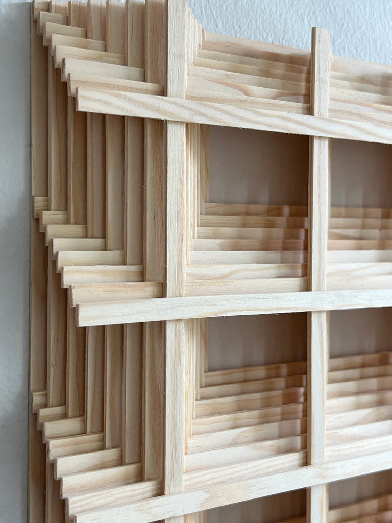 This is a study in how light and shadow fall on spaces and intervals, materials, and colour. The technique comes from the model construction used in architecture.