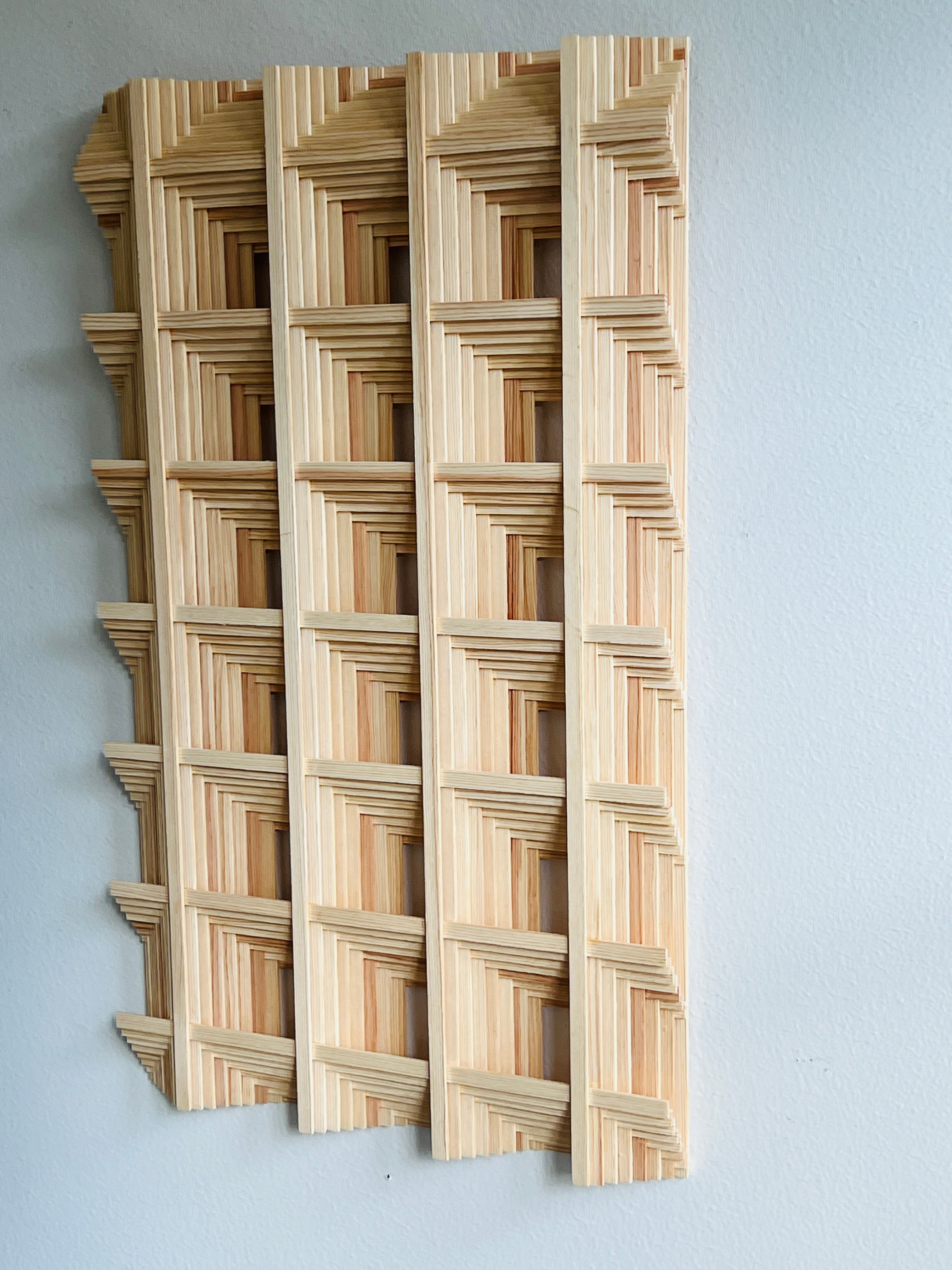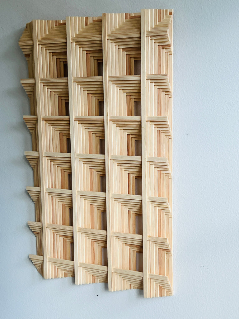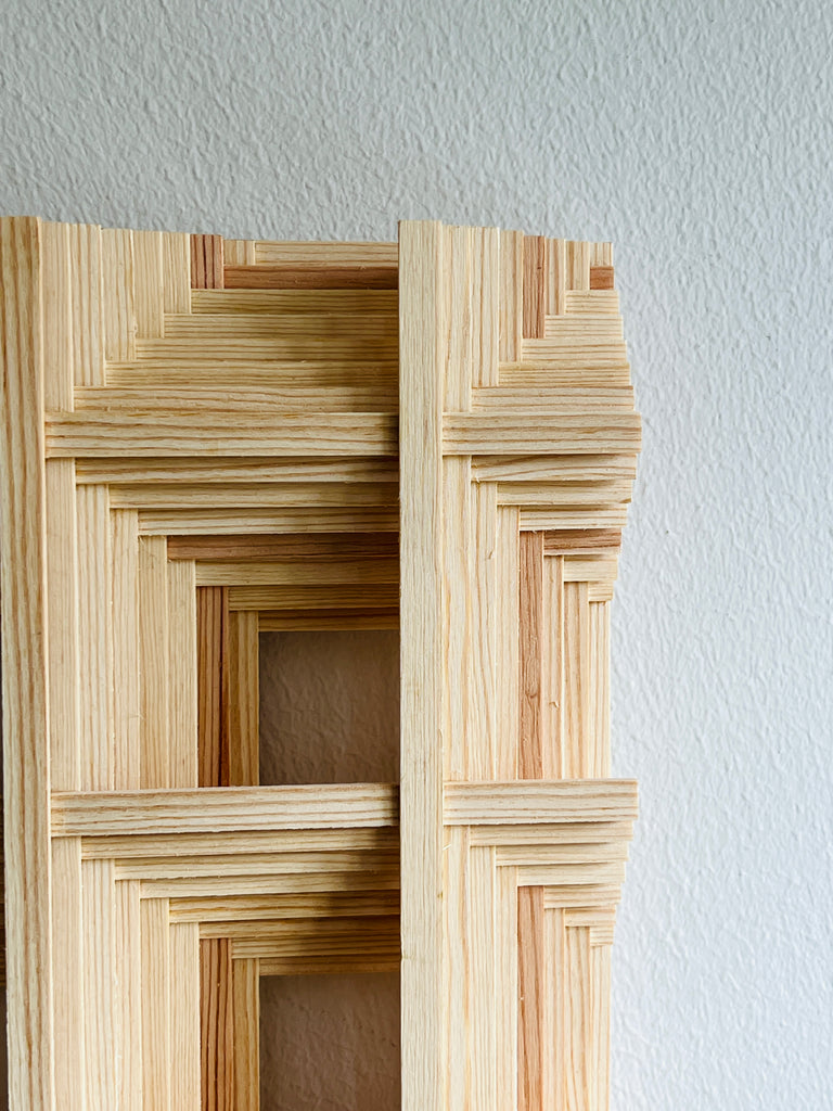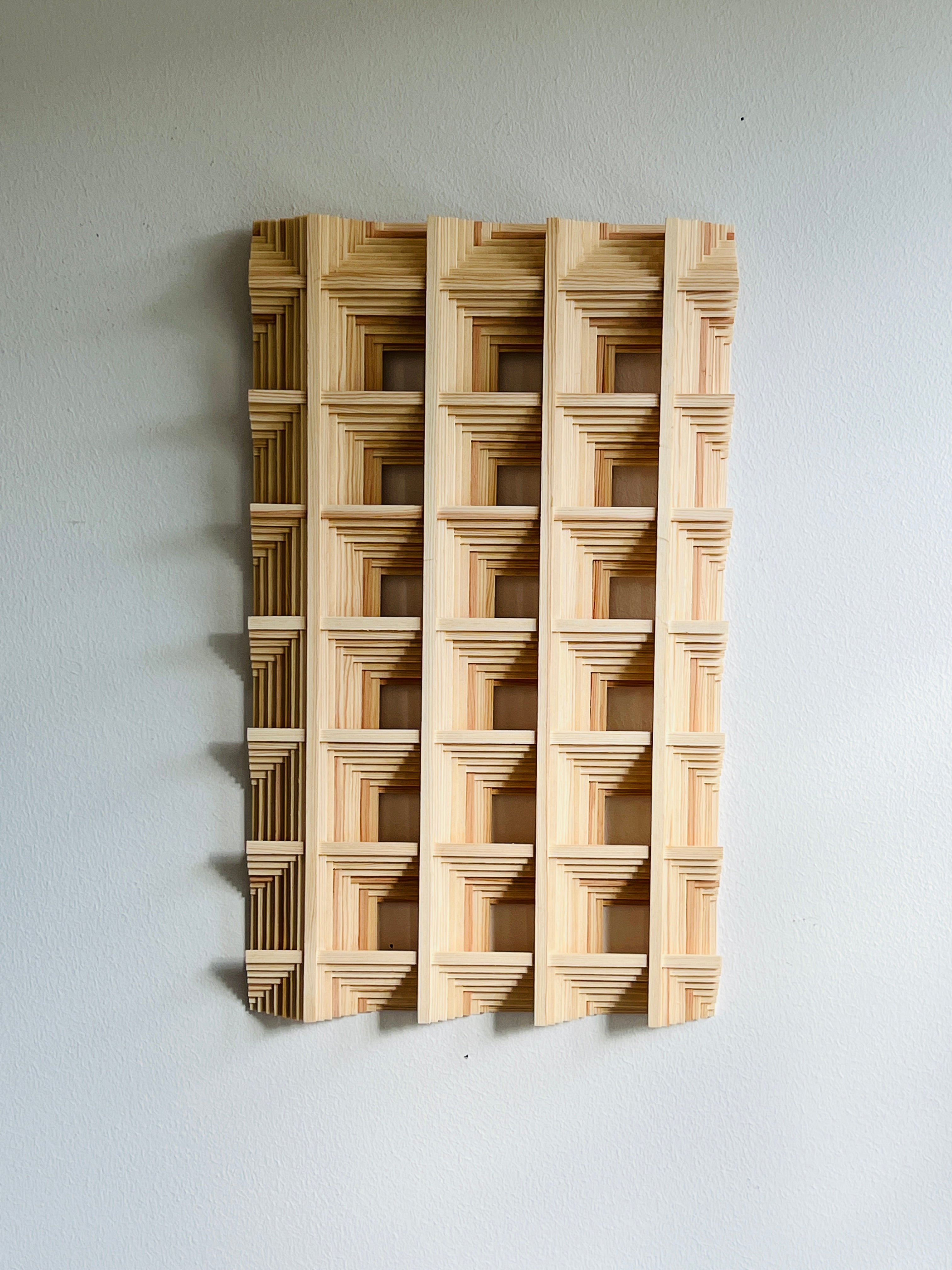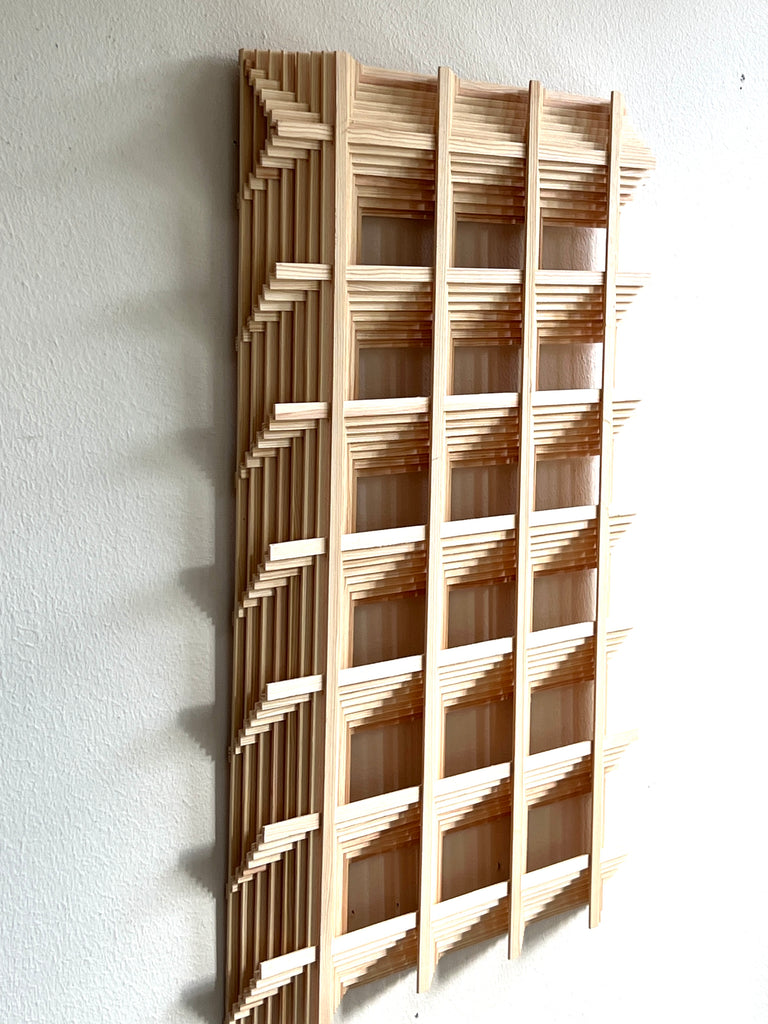 This artwork is a unique artwork in the series “Sections”, which is made exclusively for The Ode To. The name comes from Sections of a structure, as these should be seen as a cut through a three-dimensional element and stand as studies in how light and shadow fall on spaces and intervals, materials, and color.