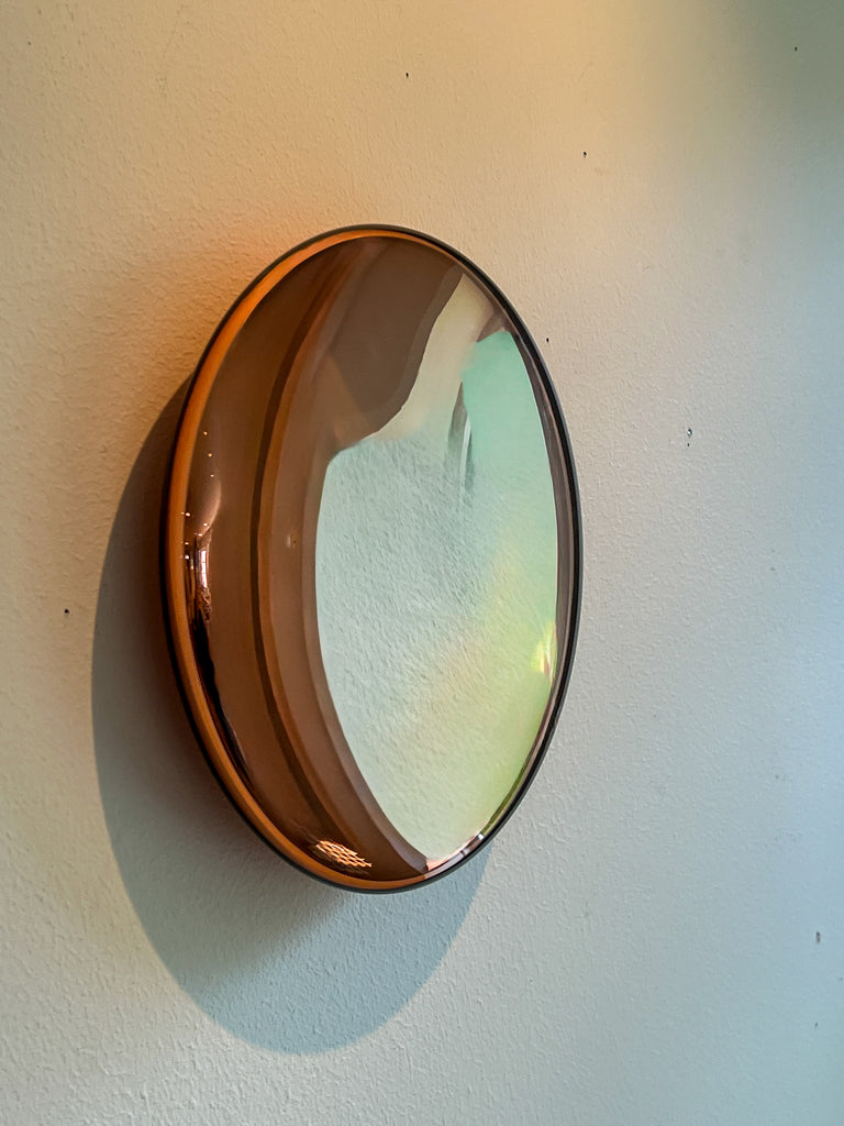 Reflecting light with its luster and texture, this glass artwork is truly one of a kind.