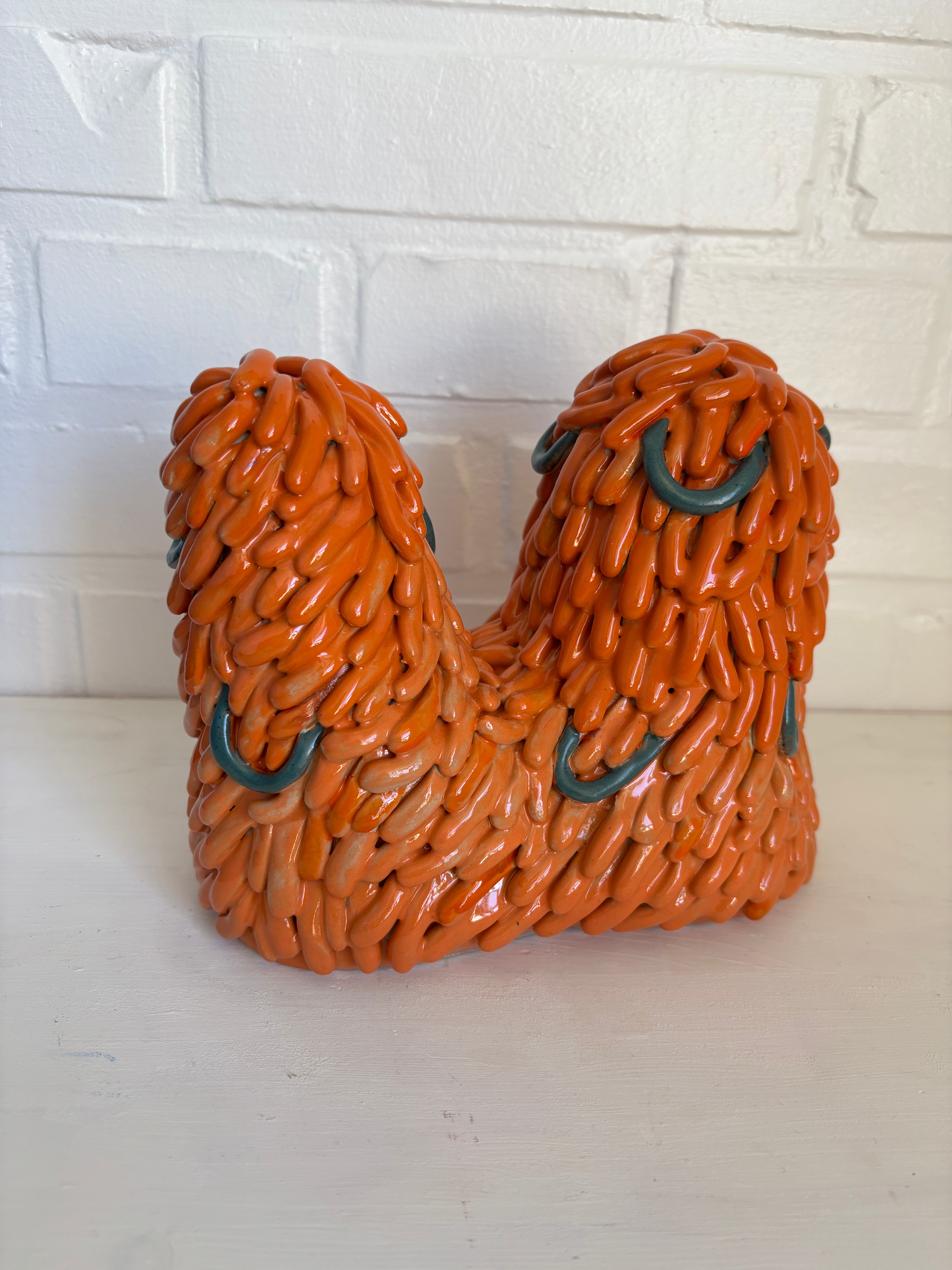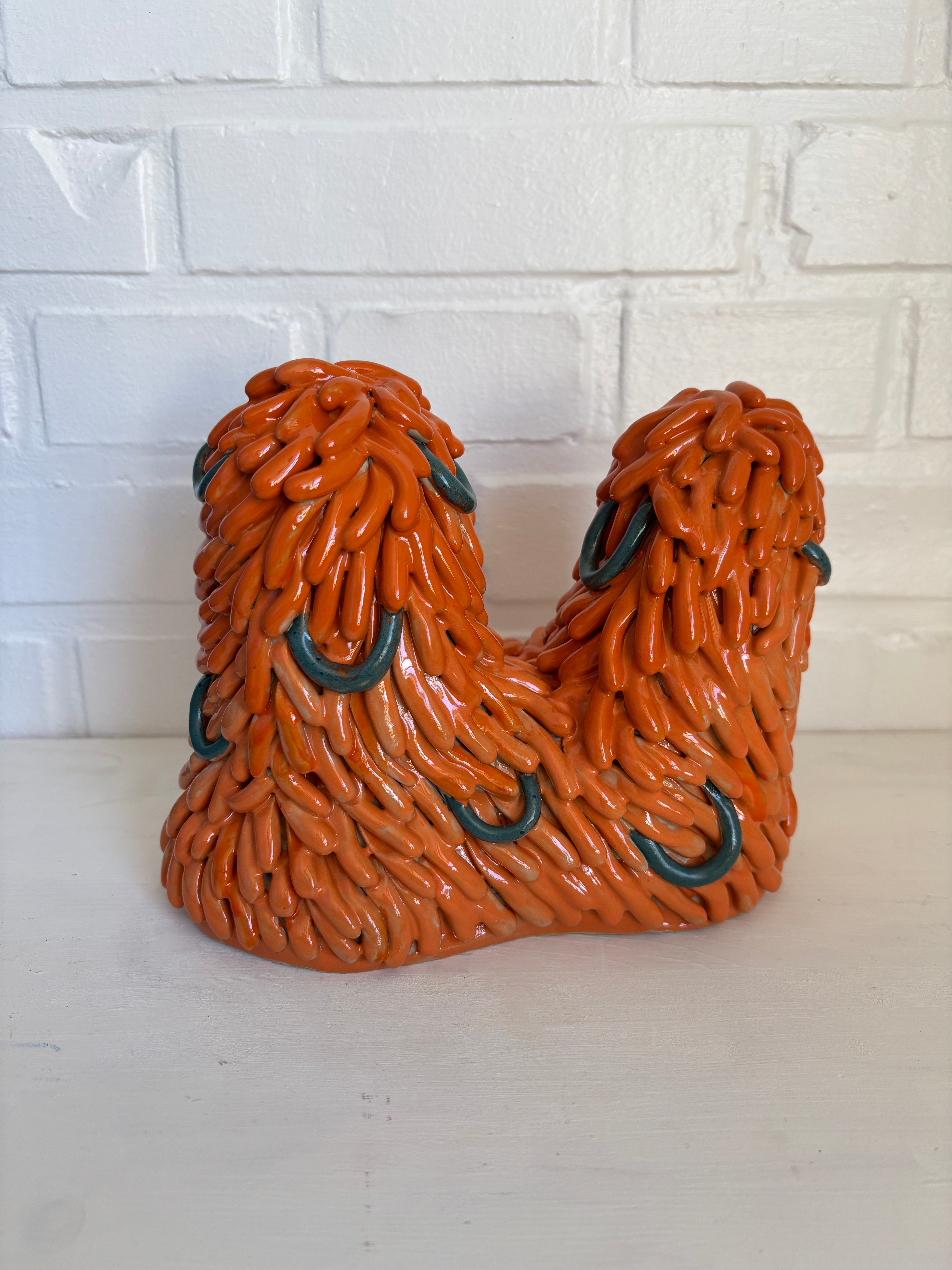 MaterialOrange and petroleum colored stoneware sculpture inspired by my many bunnies.